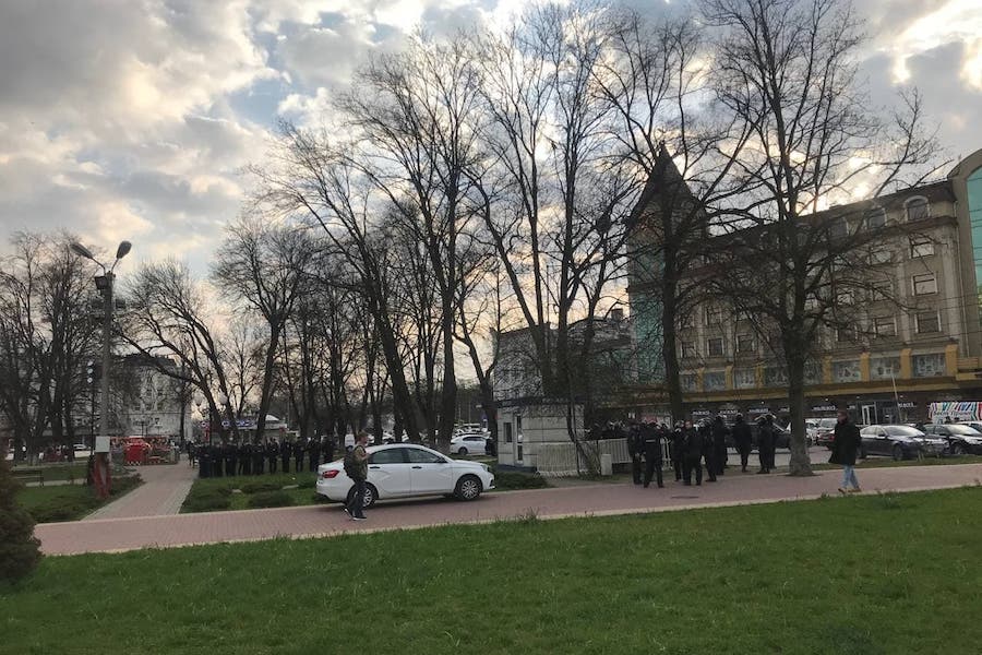 На площадь Победы в центре Калининграда стянули силовиков и пригнали автозаки, передает в среду, 21 апреля, корреспондент «Нового Калининграда» с места событий.