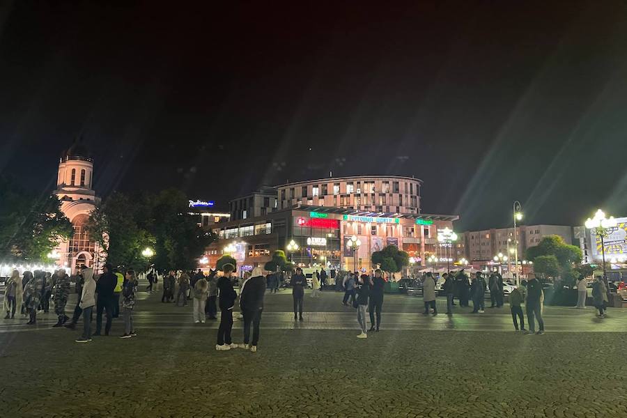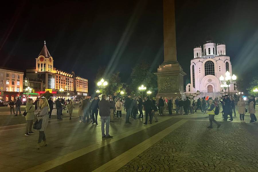 Протестующие собрались у Дома Советов, потом участники двинулись по Ленинскому проспекту, выкрикивая пацифистские лозунги. Часть отправилась к Центральному рынку, часть остановилась на площади Победы.