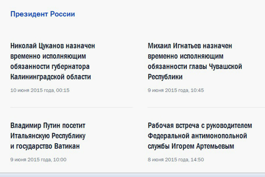 В среду утром с сайта Кремля было удалено сообщение об отставке с поста главы региона и последующем назначении Николая Цуканова временно исполняющим обязанности губернатора Калининградской области, передает корреспондент «Нового Калининграда.Ru».