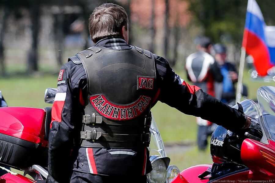 Отметим, что о принадлежности байкеров из калининградского мотоклуба «Ночные волки» напоминали только небольшие нашивки на груди. Официально мотоциклисты носили символику «МС Калининград».