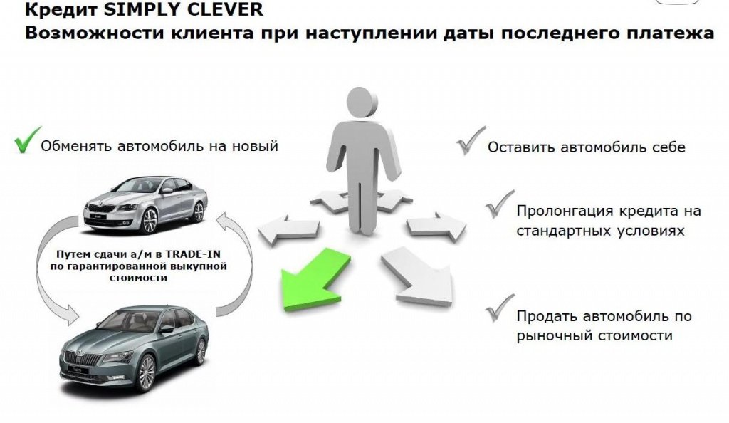 Благодаря кредиту «Simply Clever» вы можете сократить ежемесячные выплаты по кредиту, а также позволить себе автомобиль классом выше.