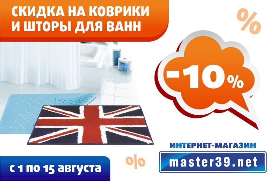 С 1 по 15 августа на коврики и шторы для ванн – 10%