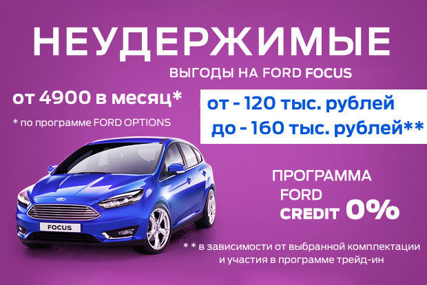 По программе Ford Options Вы можете уже сегодня ездить на новом Ford Focus всего от 4900 рублей в месяц.