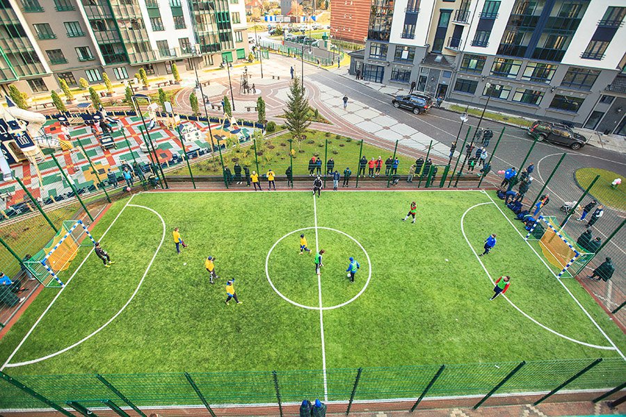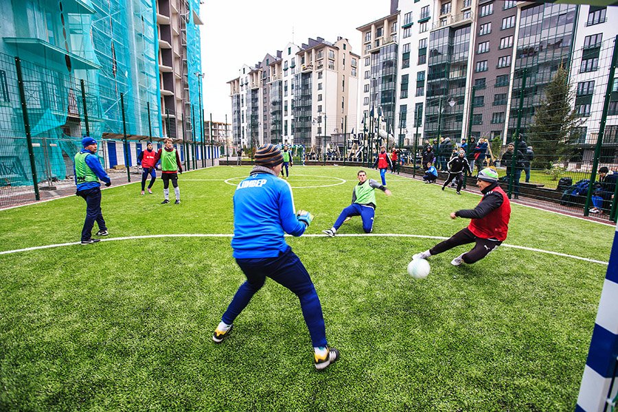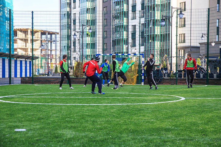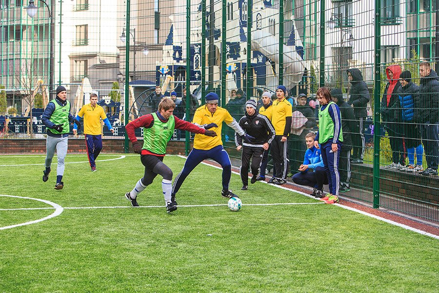 Место проведения турнира было выбрано не случайно. В этот день в жилом комплексе «Цветной Бульвар» застройщик открыл вторую спортивную площадку — футбольное поле с искусственным травяным покрытием последнего поколения. Внутри трава заполнена песком с резиновой крошкой. К слову, только в этом дворе покрытие соответствует самым высоким требованиям. Оно менее травмоопасное, чем любые другие подобные точки. Новые звукопоглощающие фиксаторы ограждения смягчают удары мяча об сетку и делают процесс игры более тихим.