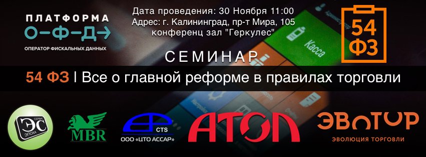Семинар посвящен изменениям в кассовой отрасли. В одном месте мы соберем всех участников рынка, ответим на вопросы, проведем презентацию личного кабинета налогоплательщика, покажем революционное решение ЭВОТОР, расскажем, кто такие ОФД и многое другое.