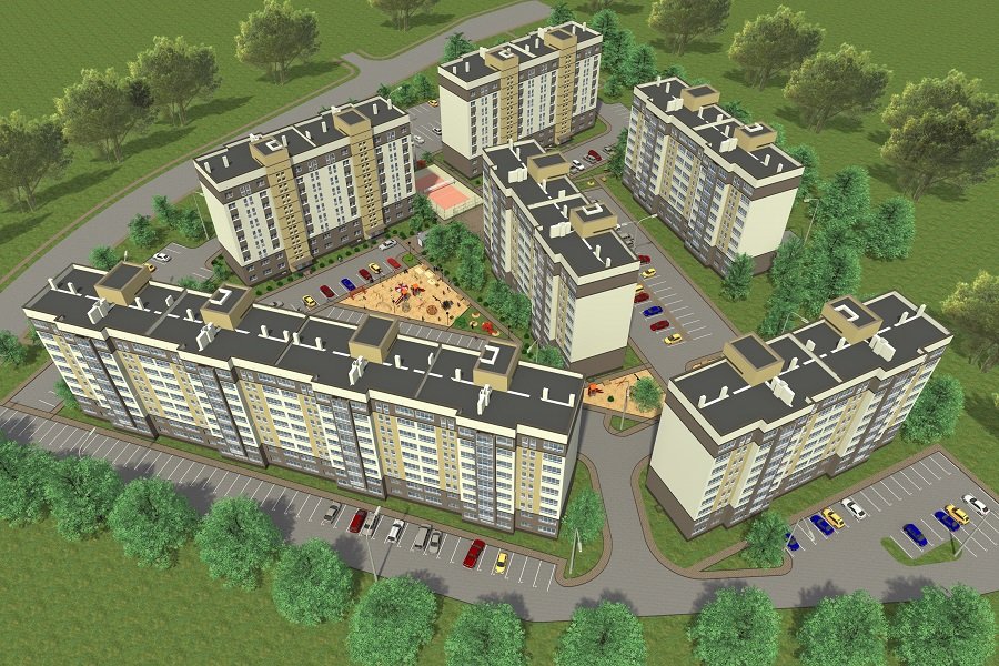 Инфраструктура: спортивная площадка, детская площадка, торгово-офисные помещения на 1-х этажах зданий, паркинг.