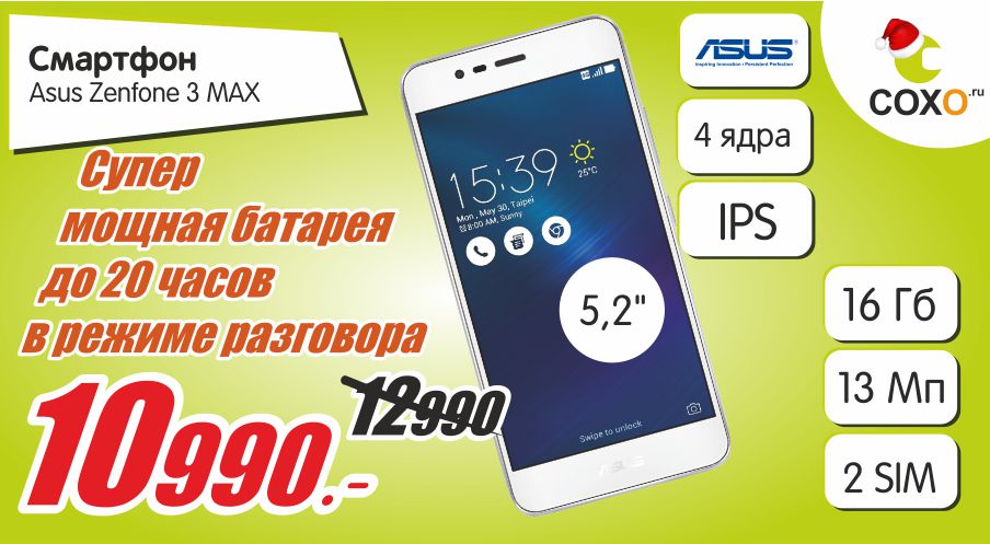 Смартфон ASUS Zenfone 3 MAX. Большой смартфон за небольшие деньги! Яркий 5.2 дюймовый IPS экран,