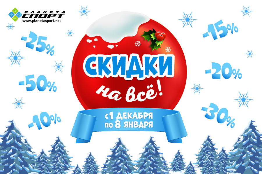 Новогодняя распродажа в магазинах «Планета Спорт» — скидки от 10% до 50% на всё!