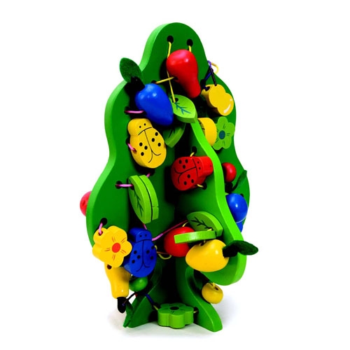 Игрушка «фруктовое дерево». С помощью этой игрушки Вы сможете совершенствовать основные приемы шнурования, закрепить основные пространственные ориентиры и научить ребенка создавать объемные фигуры, скрепляя отдельные детали при помощи шнурования.