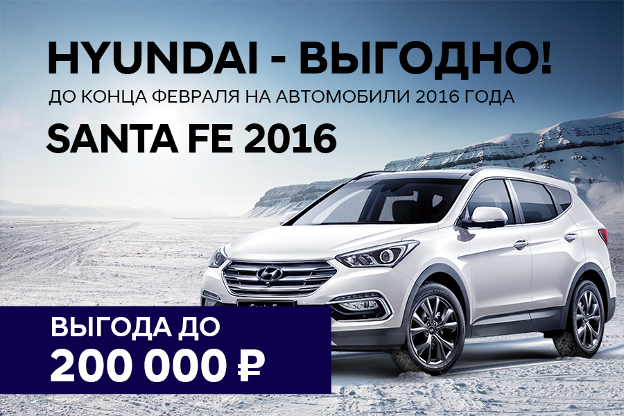Предложение на кроссовер Hyundai Santa Fe 2016 составит до 200 000 рублей.