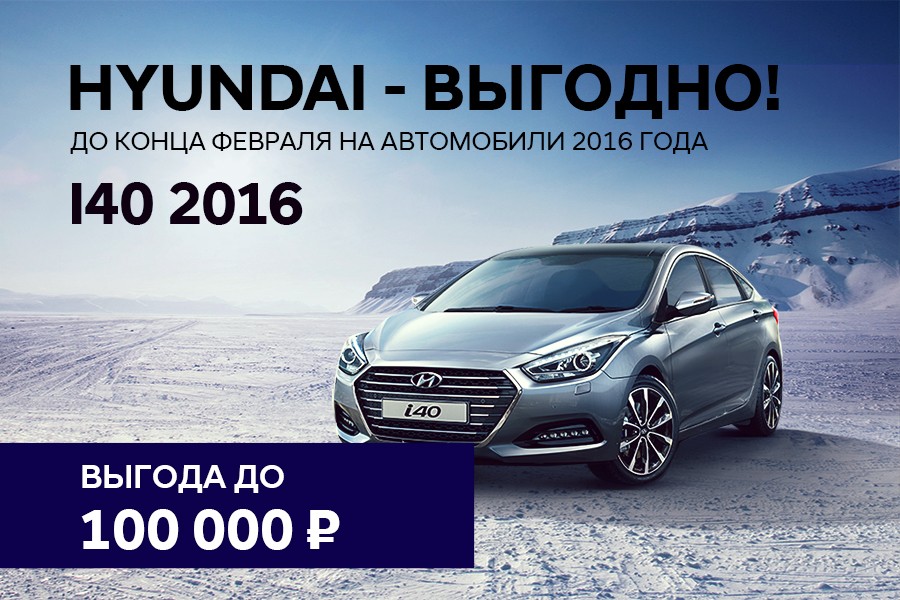 Максимальная выгода на Hyundai I40 2016 достигается за счет: выгоды до 40 000 руб. предоставляется по программе H-promise и выдаче подарков в виде дополнительного оборудования на сумму до 60 000 руб.