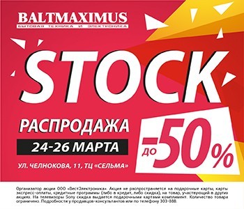 Начните с техники! Тем более магазин Baltmaximus в Торговом центре «Сельма» на ул. Челнокова, 11, только 24, 25 и 26 марта устраивает грандиозную Stock-распродажу!