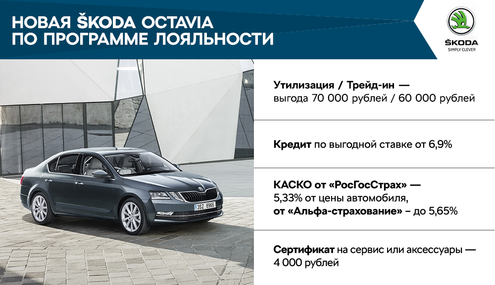 Компания ŠKODA AUTO Россия подготовила приятный сюрприз для своих клиентов: программа лояльности для владельцев ŠKODA Octavia любого года выпуска. Для участников программы при покупке новой ŠKODA Octavia отныне действует широкий пакет специальных предложений. Это уникальная возможность приобрести новинку по выгодной цене на старте продаж. Привлекательные условия распространяются на участие в программах Утилизация/