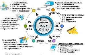 Российский сектор M2M стремительно развивается. Благодаря быстрому распространению систем мониторинга, использующих мобильные сети для передачи данных от удаленных объектов, M2M-решения востребованы в различных сферах бизнеса. Сегодня M2M-решения применяются в логистике, безопасности, потребительской электронике, промышленности, медицине, энергетике, торговле, ЖКХ и многих других отраслях. По оценкам экспертов, к 2015 году число устройств, использующих мобильные сети для передачи данных, превысит 18 миллионов. Рост рынка поддержит появление новых масштабных проектов, таких как «ЭРА ГЛОНАСС» и оснащение М2М-модулями фискальных регистраторов, счетчиков воды и электроэнергии (в соответствии с Федеральным Законом РФ №261 ФЗ).