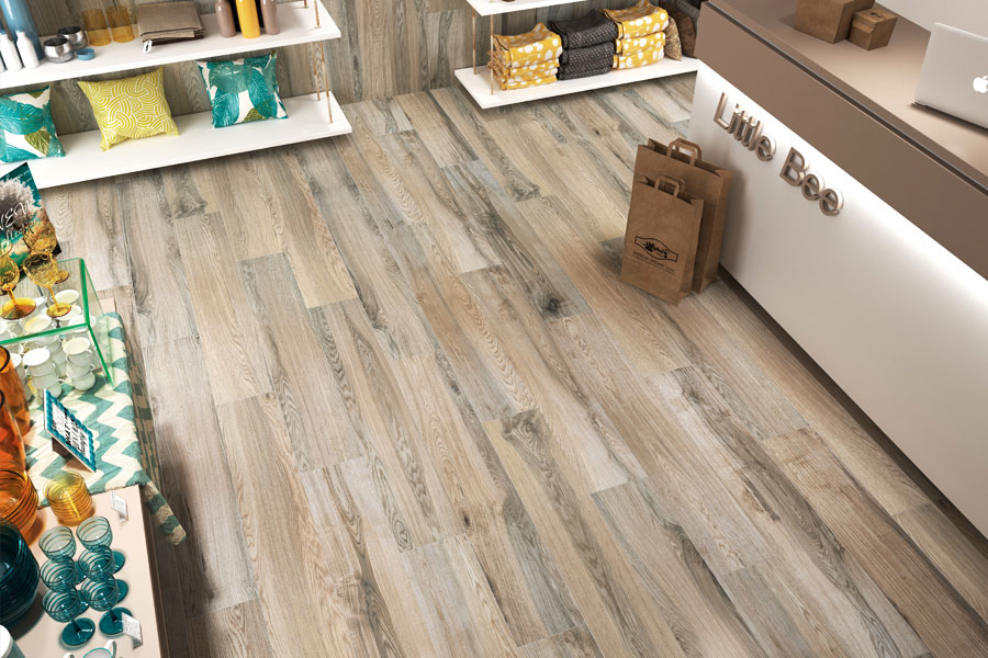 Кроме того, в салоне представлено огромное количество позиций в модном сегодня эко-стиле. К примеру, керамогранит–ректификат, стилизованный под натуральное дерево. Оригинальная технология изготовления такого керамогранита позволяет укладывать его с минимальным, почти незаметным швом, создавая абсолютное ощущение того, что под ногами у вас натуральное дерево.
