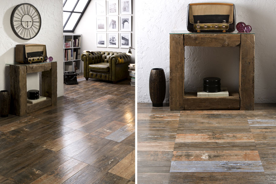 Еще труднее отличить от настоящего дерева плитку из коллекции Shaby Multi, оригинальным образом стилизованную под древесину с облупившейся краской. Столь смелая дизайнерская работа предоставит вам огромный пласт для творчества и позволит создать по-настоящему уникальный тематический интерьер. Как и в случае с коллекцией Oldwood, имитирующей плитку под окаменелое дерево.