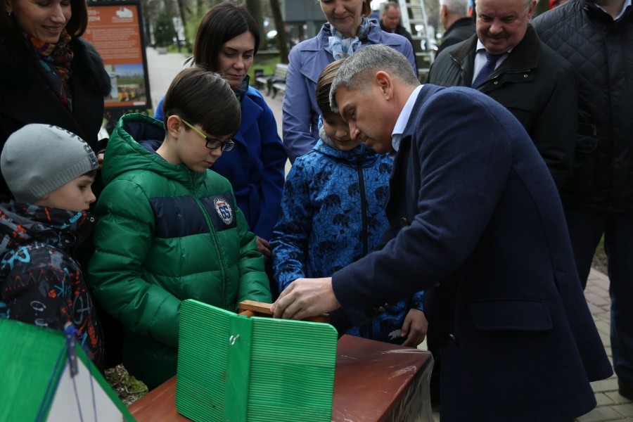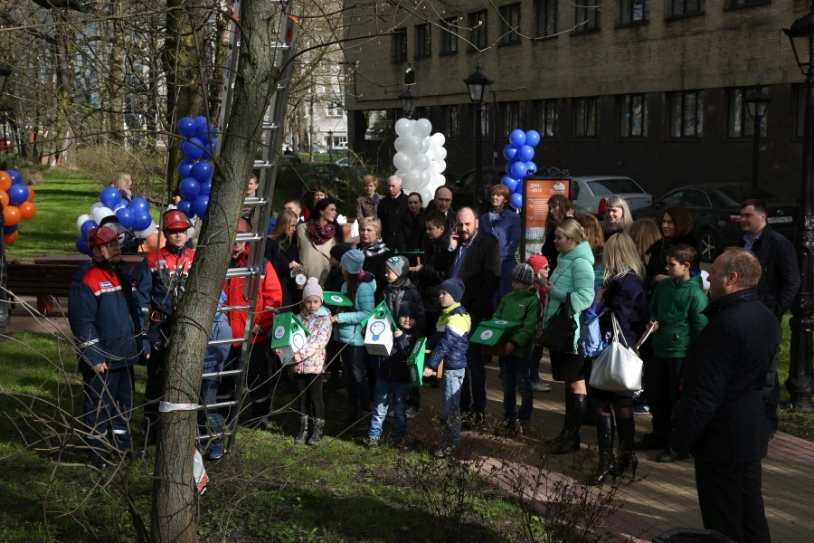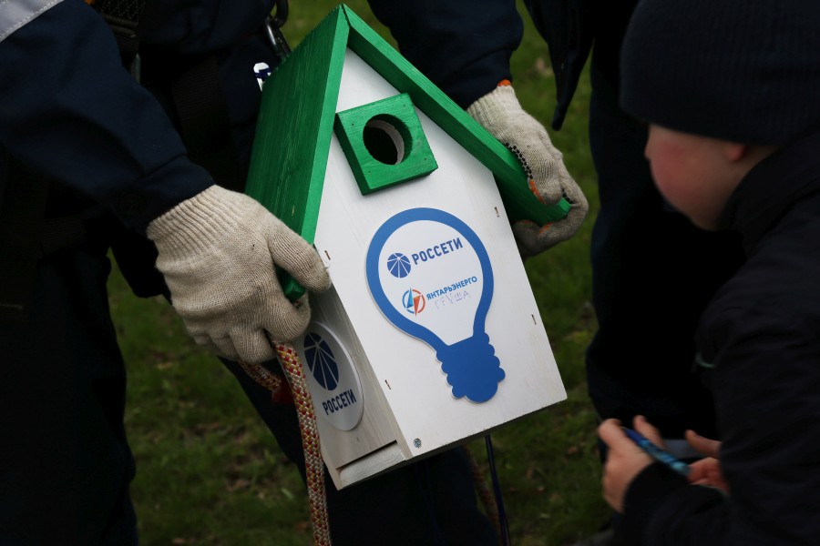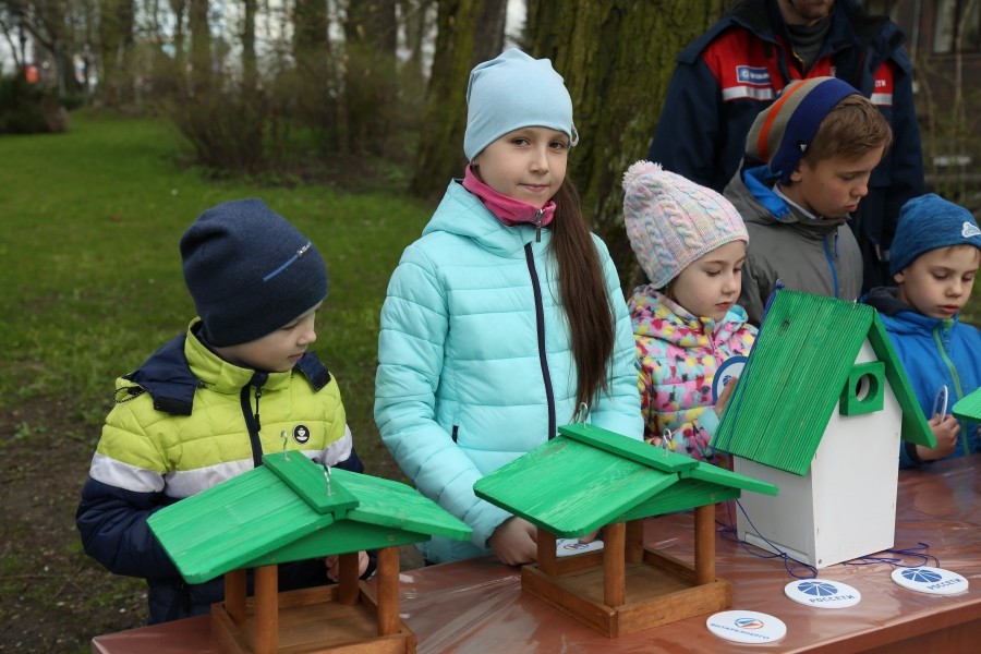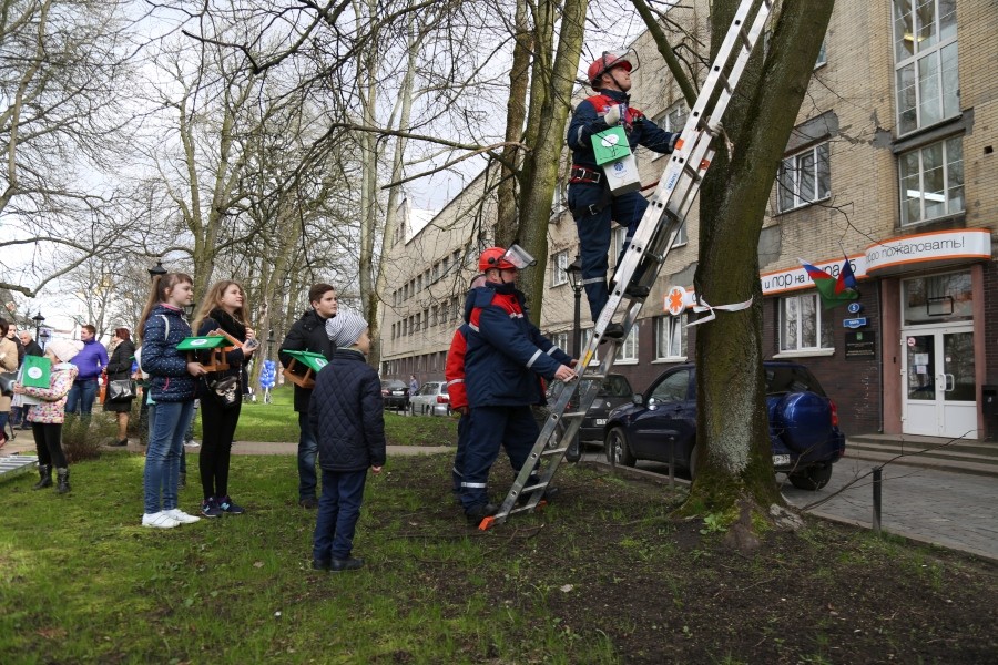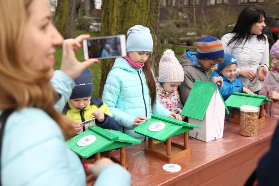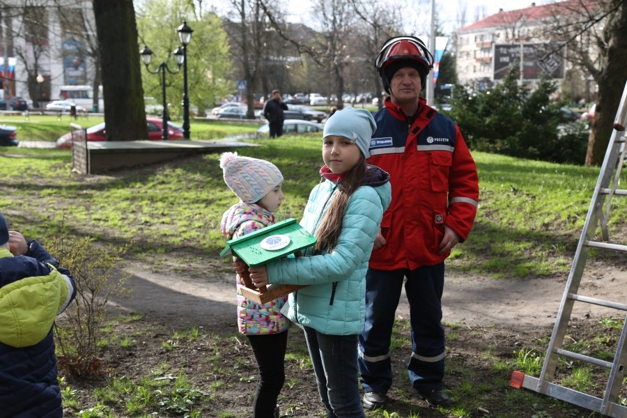 Их развесили сотрудники АО «Янтарьэнерго» вместе с детьми. В экологической акции приняли участие более 50 человек. Кормушки размещены по всей территории сквера, они узнаваемы и досягаемы, поэтому покормить птиц сможет любой неравнодушный калининградец. «Домики» для птиц закрепили на веревки, чтобы не нанести вреда деревьям, растущим в сквере. По словам энергетиков, эта акция — первый шаг компании в поддержку экологического движения в России.