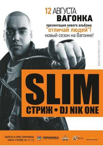 Концерт легендарного участника группы Centr – Slim! Презентация его сольного альбома «Отличай людей», а так же Стриж & Dj Nik One.