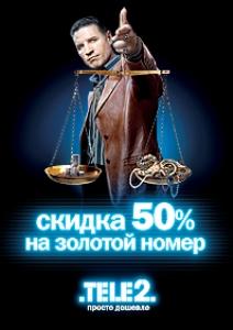 С 10 августа по 10 октября 2011 года в Интернет-магазине Tele2 проходит акция «Золотой номер со скидкой 50%». Посетители виртуального магазина могут выбрать для себя золотой номер телефона из 1500 вариантов.