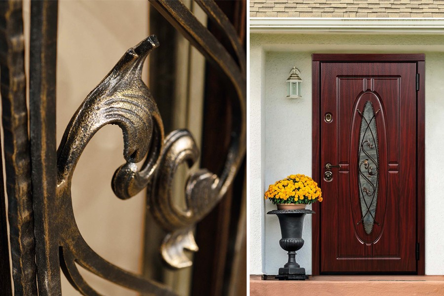 Для любителей классики же отлично подойдет дверь „Монарх“ с ее глубоким цветом, изящным кованым узором, декорированием стеклом и приятной глазу симметрией…
