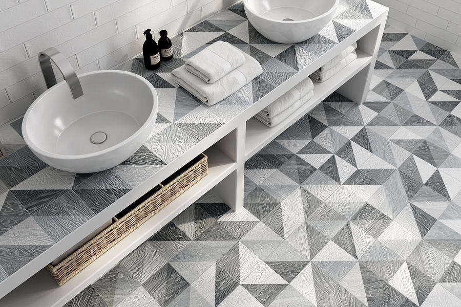 А для тех, кому традиционный эко-стиль кажется недостаточно «динамичным», идеально подойдет плитка из коллекция Melange, имитирующая привычную для эко-стиля фактуру натурального дерева, но сочетая ее с совершенно не характерным для этого направления ломаным геометрическим рисунком!