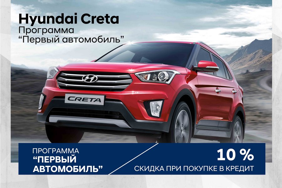 Первый автомобиль на льготных условиях! Итак, ООО «Динамика Калининград Хёндэ» предлагает приобрести автомобиль Hyundai Creta или Hyundai Solaris со скидкой в 10% клиентам, покупающим свой первый автомобиль.