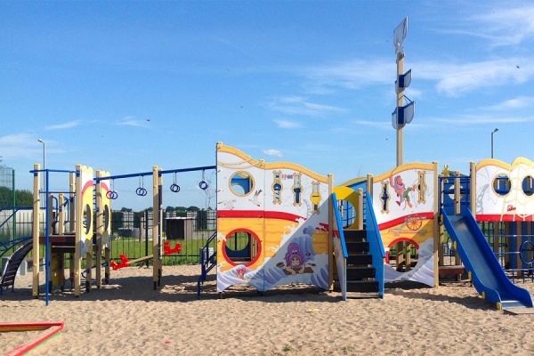 В июле на территории жилого комплекса «Новое Голубево» появился целый детский городок в виде огромного корабля, наполненного всевозможными лазалками, спусками и горками! Площадка вокруг корабля была оборудована песочницей, несколькими видами качелей и даже детским комплексом по типу шведской стенки с турниками, лестницами и кольцами. Поверьте, такое разнообразие развлечений займет вашего ребёнка надолго! Но не беспокойтесь — стоять весь день на ногах не придётся. По всему периметру площадки установлены удобные лавочки, с которых вашего ребёнка будет отлично видно.