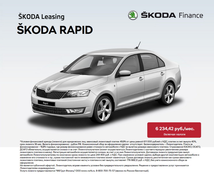 ŠKODA Rapid в лизинг. Узнать о модели подробнее.