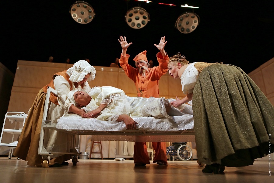 Третьим спектаклем гастролей в Сибири была комедия Ж.-Б. Мольера «Мнимый больной» (16+). Ее покажут калининградцам 2 декабря. Стряхнул пыль с сочинения 17 века известный московский режиссер Никита Гриншпун. При внешнем соответствии костюмов той эпохе комичны его отсылки к современности.