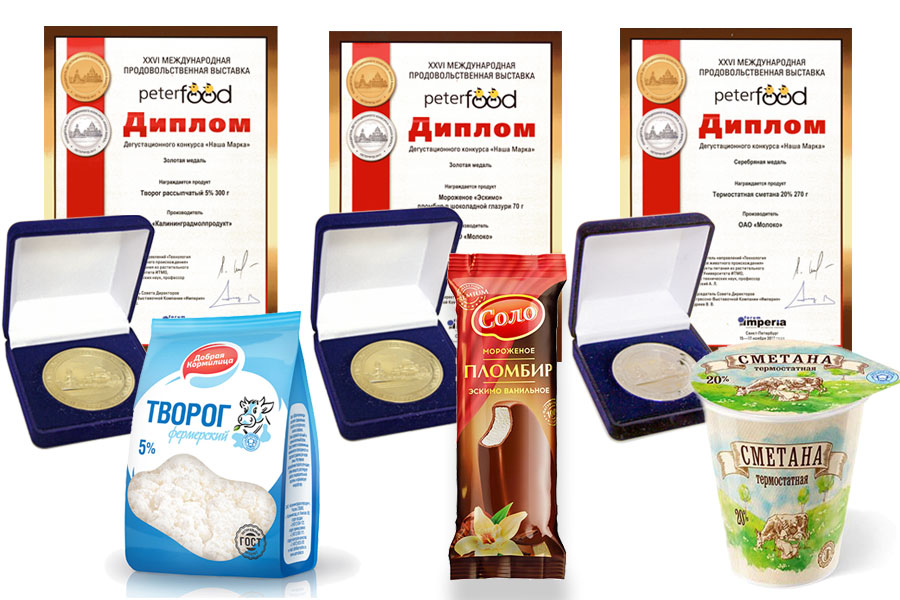 Компания ОАО «Молоко», представлявшая Калининградскую область, одержала победу сразу в нескольких номинациях, заработав 3 золотых и 1 серебряную медали.