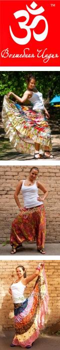 В магазин «Волшебная Индия»™ поступила новая партия летней одежды из Индии, в том числе атласные, хлопковые и шелковые юбки, алладины, сарафаны и штаны, восточные платки, чолли (топики), сари — всего более 50 наименований!