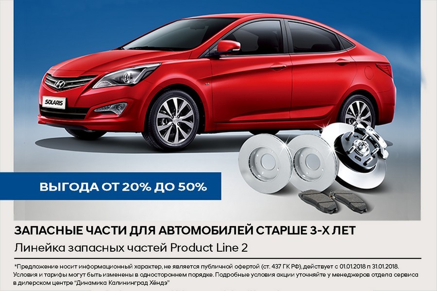 К примеру, сервисный центр официального дилера Hyundai в Калининграде, компании «Динамика», прямо сейчас предлагает таким клиентам специальные условия технического обслуживания по ценам 2012 года, а стоимость работ при постгарантийном ремонте автомобилей Hyundai будет на 30% ниже*.