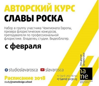 С 19 по 23 февраля состоится семинар известного российского флориста Вячеслава Роска (г. Москва).