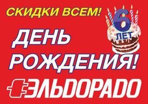 Компания «Эльдорадо» отмечает 6 лет успешной работы на рынке Калининградской области и в честь этого замечательного праздника всем покупателям скидки!