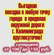 Кто из нас хочет платить много за услуги такси? Водители такси, просим вас опустить руки. А всем остальным напомним, что в такси «Кобра» всегда фиксированная стоимость поездок по Калининграду – от 100 до 150 рублей. «Всегда» – это значит в любой день недели и в любое время суток при заказе по телефону (4012) 91-91-91. Также действуют выгодные цены на поездки в аэропорт (всего 300 рублей) и поездки по области. Подробнее – на сайте «Акция39.ру»: http://www.akciya39.ru/kobra.