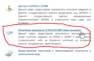 3. Выберите пункт «Получение выписки из ЕГРЮЛ/ЕГРИП через интернет»