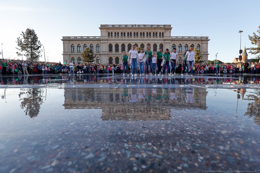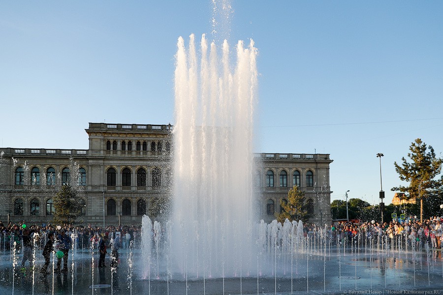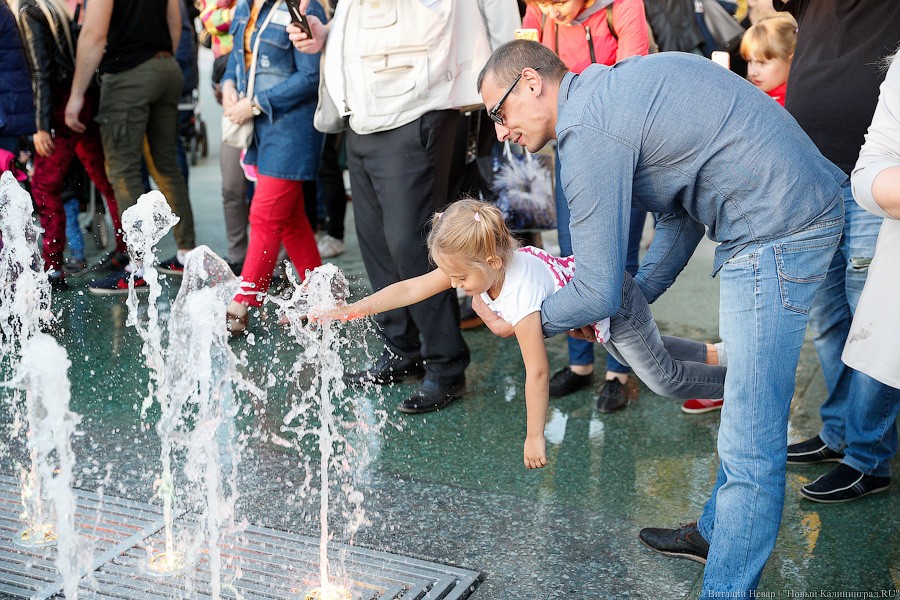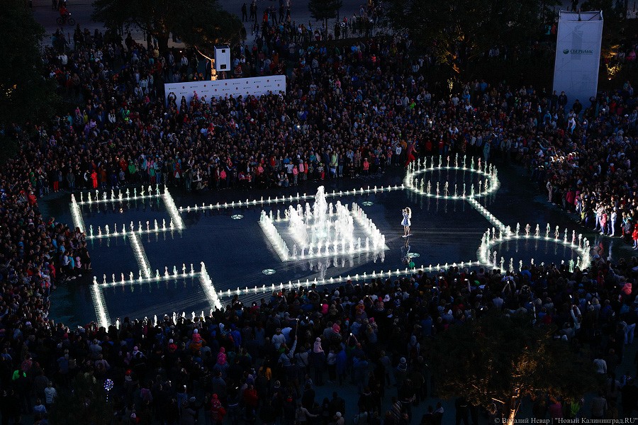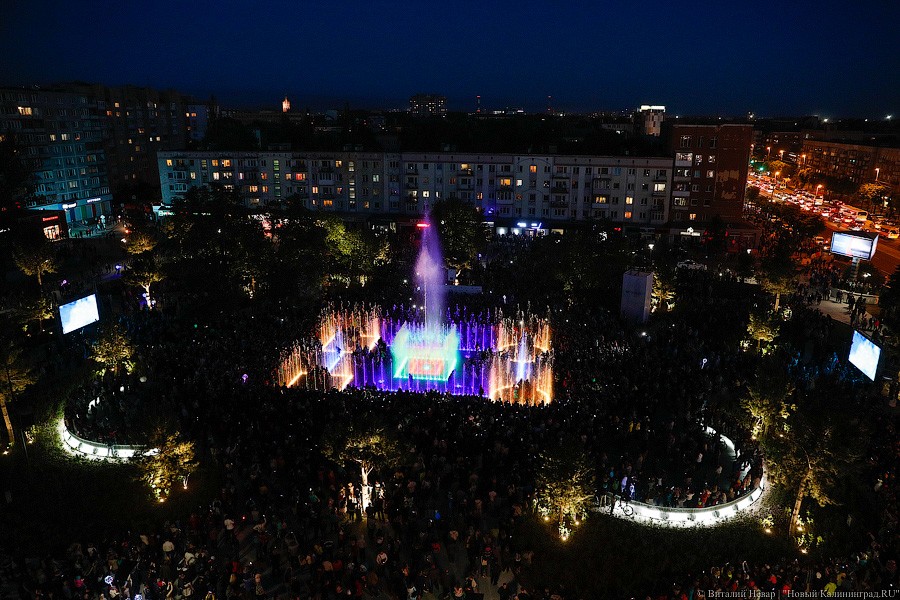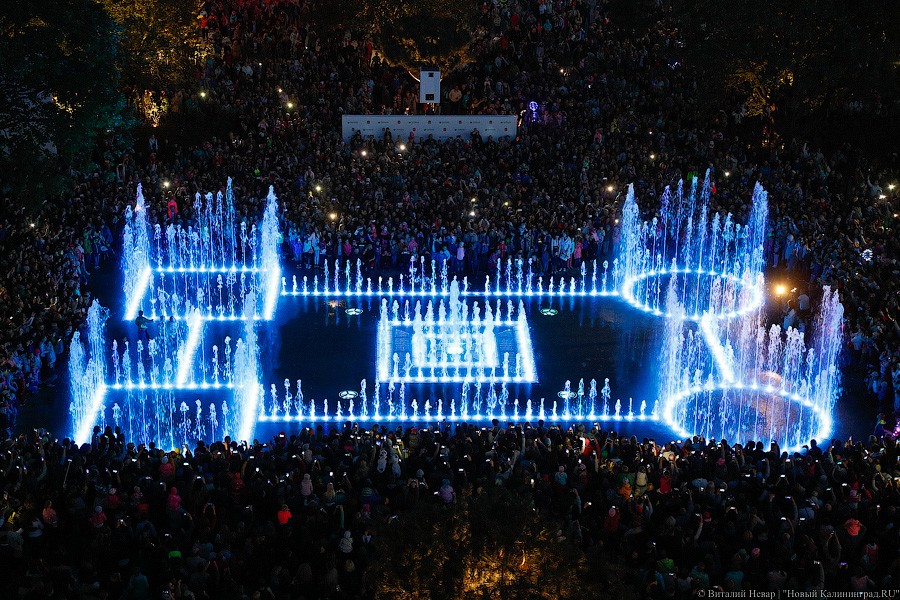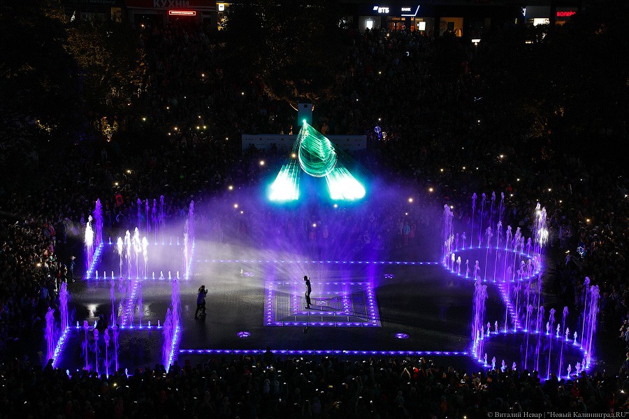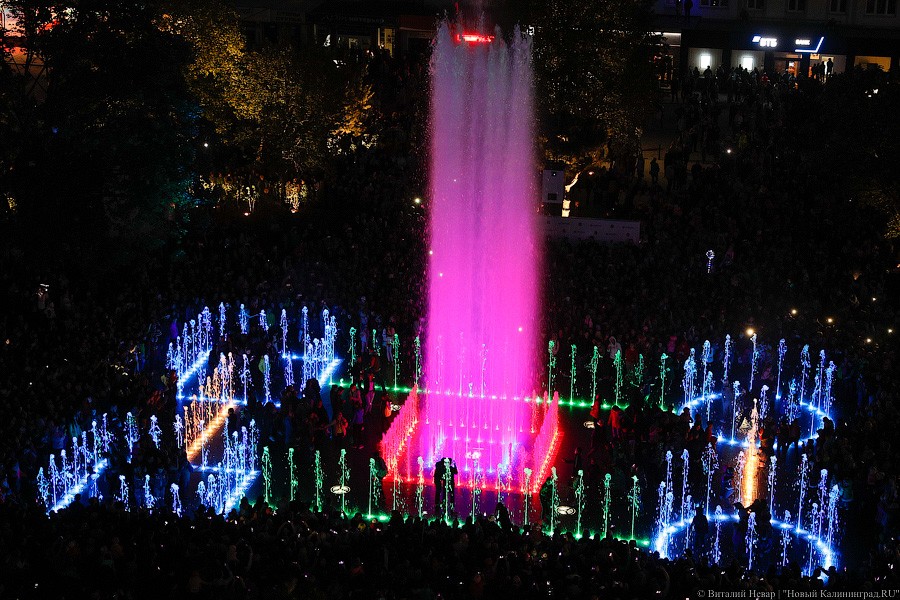 Самое главное зрелище, конечно, ждало горожан с наступлением темноты — в сторону подсвеченных всеми цветами радуги водных струй и лазерных лучей устремились не только тысячи завороженных глаз, но и множество камер мобильных телефонов. Похоже, калининградцы пока еще не до конца осознали, что это чудо современной техники — вовсе не разовое развлечение и останется в городе навсегда.