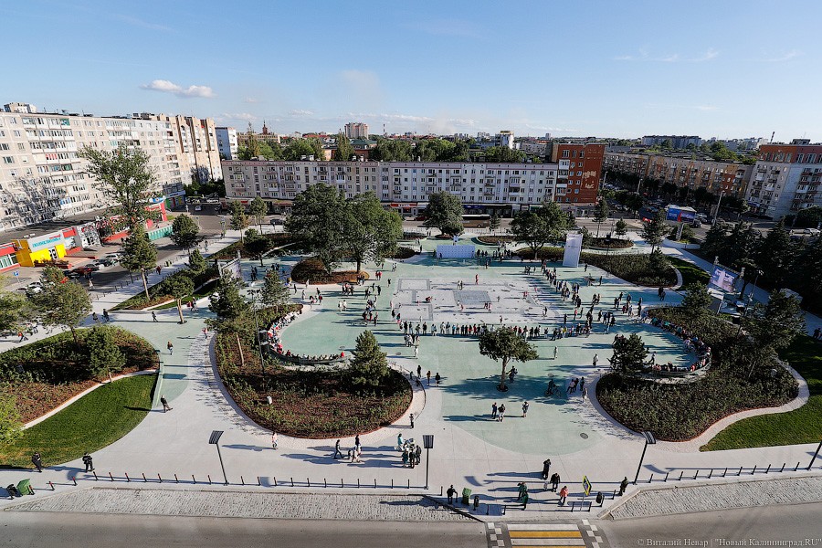 Уже за час до времени официального открылся сквер был заполнен людьми. Молодые люди пили кофе, катались на скейтах и самокатах, что здесь делать особенно комфортно, потому что решено было организовать дорожное покрытие не из привычной плитки, а забетонировать.