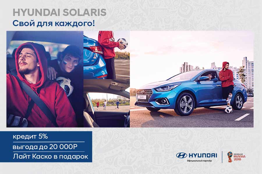 Бестселлер бренда Hyundai Solaris в июне 2018 года получил сразу несколько приятных преимуществ — кредитная ставка 5%, Лайт Каско в подарок и выгоду до 20 000 рублей при обмене своего Hyundai на новый.