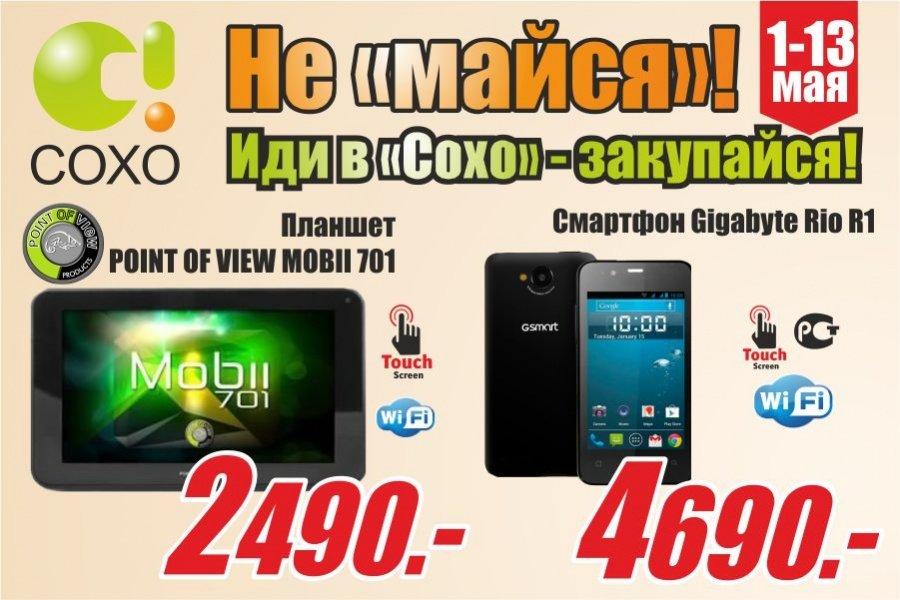 Весь май в «Сохо» каждый день – 1 товар по суперцене! Товаром дня может стать: видеорегистратор, навигатор, игровая приставка, монитор, МФУ, планшет или смартфон, фотоаппарат, электронная книга и многое другое… Скидки до 50%!