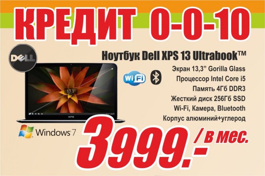До 13 мая действует кредитная программ 0-0-10: В каждой товарной группе есть товары с рассрочкой на 10 месяцев, без первого взноса, без переплаты. Кредит предоставляется ООО «Хоум Кредит энд Финанс Банк» (лицензия №316 Банка России от 31.03.2003 года, бессрочная, ОГРН - 1027700280937). Подробности.