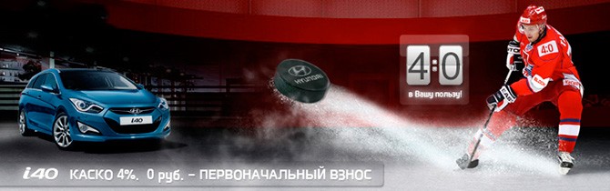 i40 4:0 в Вашу пользу: первоначальный взнос по кредиту — 0%, специальный тариф на КАСКО — 4%.