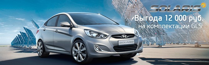 Скидка 12 000 рублей на комплектации GLS: Comfort и Family (для Solaris в кузове седан), Style и Dynamic (для Solaris в кузове хэтчбек).