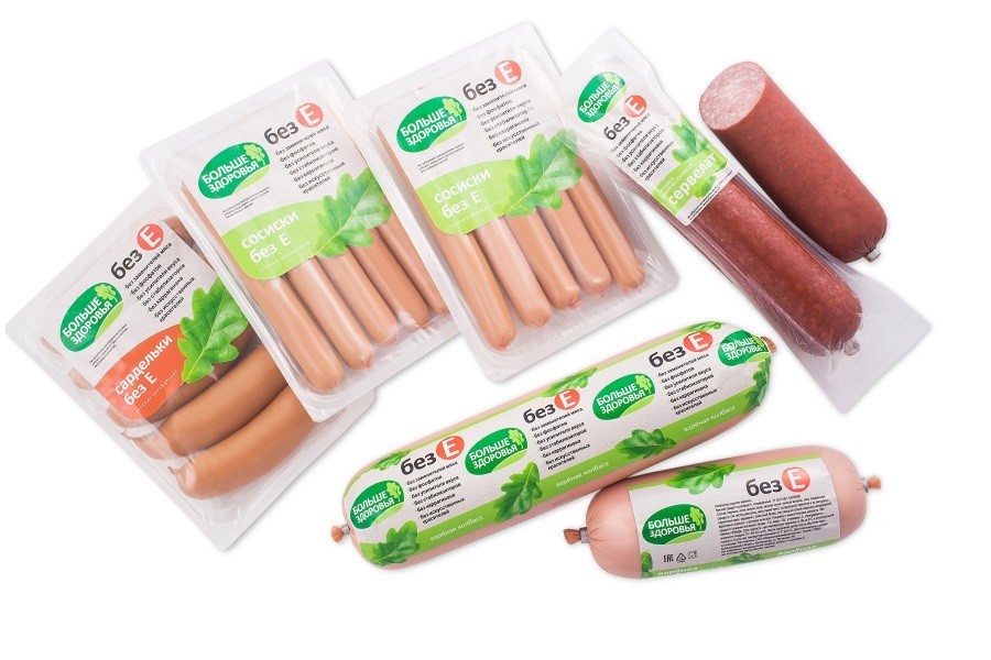 Сегодня под брендом «Больше здоровья» выпускаются без Е-добавок: вареная колбаса, сервелат, сосиски и сардельки. В этих продуктах вы не найдете заменителей мяса, фосфатов, усилителей вкуса, стабилизаторов, каррагинана и искусственных красителей. Только натуральные добавки! Вместо нитрита натрия Е250 — природная поваренная, вместо искусственных красителей — овощной сок и натуральные специи и т. д.