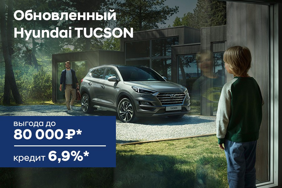 *Кредит 6.9% годовых действует при покупке Hyundai Tucson при первоначальном взносе в 30% с обязательным страхованием жизни. Предложение действительно до 31.08.2018. Партнер программы ООО «Русфинанс Банк»