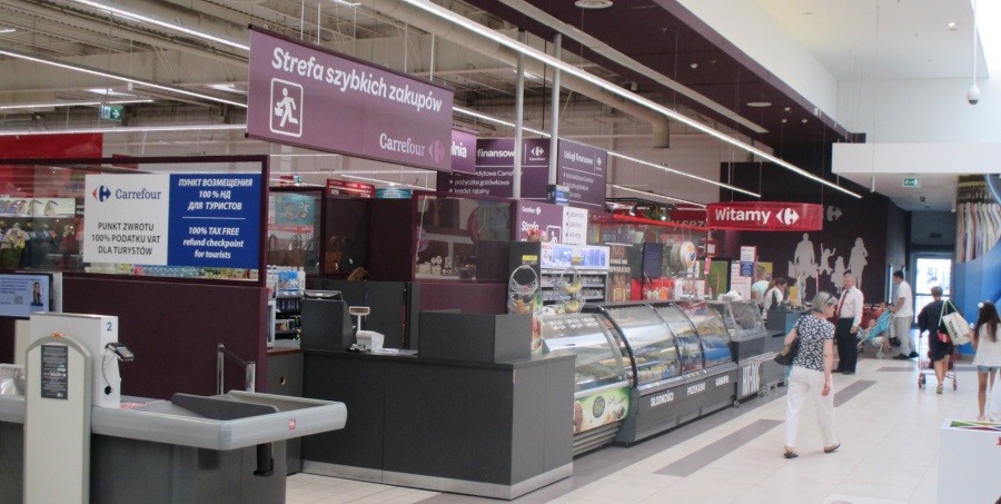 Благодаря приложению в Carrefour в ТЦ «Огроды» в Эльблонге вы можете воспользоваться скидками до 50% и дополнительно получить полный возврат Tax Free, то есть все 23% налога на товары и услуги (НДС). Чтобы делать действительно дешевые покупки, вам не придется ездить далеко. Эльблонгский Carrefour расположен прямо у границы, в Торговом центре «Огроды». В гипермаркете вы купите практически все: продукты питания и бытовую химию, косметику, электронику, игрушки и игры, товары для дома и сада. Еще одним преимуществом является большая и бесплатная парковка.