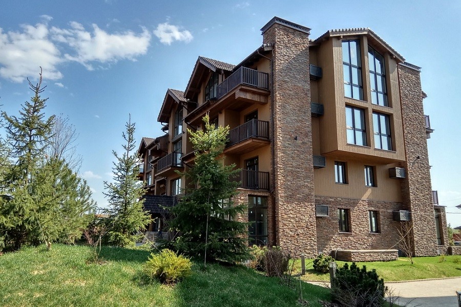 Современные веяния строительной моды говорят о том, что вместо фасадной плитки для облицовки дома можно использовать кровельную, которая будет смотреться не хуже других материалов. Плитка фирмы Eternit Dacora выполнена из фиброцемента. Она лёгкая, устойчива к влаге и