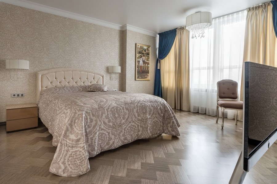 «Классика» — это популярный стиль интерьера, в который очень хорошо вписывается натяжной потолок. Для классических интерьеров применяются матовые или сатиновые фактуры, можно добавить фотопечать с изображением фресок, картин или золотистую роспись. Для таких интерьеров нужно иметь высоту помещения больше обычной, но даже для стандартной высоты можно перенять некоторые детали классического стиля.
