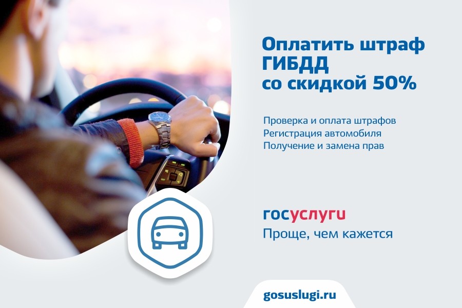 С помощью портала «Госуслуги» вы сможете в считанные секунды узнать о наличии у вас автомобильных штрафов и, если таковые имеются, оплатить их онлайн со скидкой 50%* (скидка предоставляется, если оплата штрафа происходит в течение 20 дней с момента его получения).