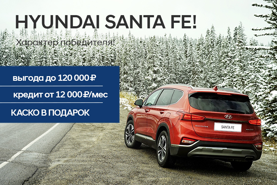 При обмене своего Hyundai на новый Santa Fe вы получаете выгоду до 120 000 р.*